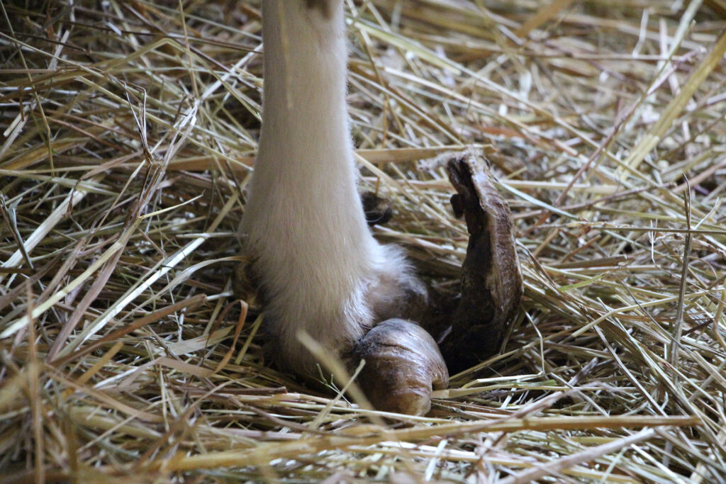 Patience et Brodette nous sont arrivées en bien mauvaise condition : elles n’ont probablement pas été tondues depuis plusieurs années et leurs onglons n’ont visiblement jamais été parés. Les deux brebis vivaient enfermées dans un bâtiment et devaient donc très peu se déplacer, ce qui n’a pas du tout arrangé l’état de leurs pieds. Elles présentent ainsi des sabots en forme de « babouche », et le parage qui leur permettra de retrouver des pieds normaux s’annonce très délicat.